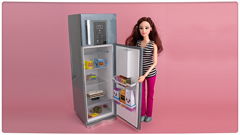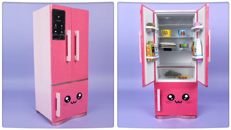 Dê vida à sua própria mini geladeira de brinquedo! ✨Você pode montar apenas em papelão ou decorar e personalizar do seu jeito, trazendo um toque realista e muita diversão à sua criação. 😍